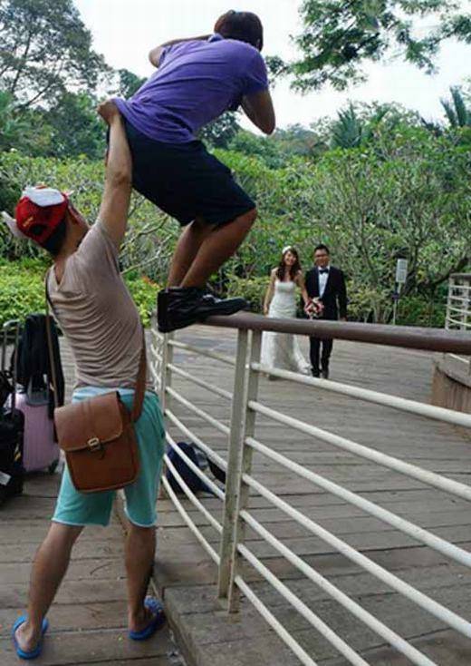 Tulajdonképpen szöveg nem is kellene, hiszen a fotók magukért beszélnek, és jól látható rajtuk, milyen...unortodox módszerekkel dolgoznak Észak-Ázsia fotósai azért, hogy kiváló esküvői fotók születhessenek. Van minden, a nyakbaüléstől a kötéllel lábánál fogva fellógatott vőlegényig.