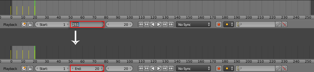 Ha elkészültünk, állítsuk be az utolsó frame-et az animáció végének a képen látható módon. Így az animáció ismételhetővé, loopolhatóvá válik.