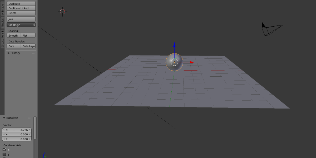 Ezen kívül érdemes létrehoznunk egy plane-t is, ami síkban helyezkedik el a Z tengely nulladik magasságában. Ez lesz a padlónk, tehát méretezzük viszonylag nagyra. A cél az, hogy a gömböt gumilabdaként pattogtassuk a padlón.