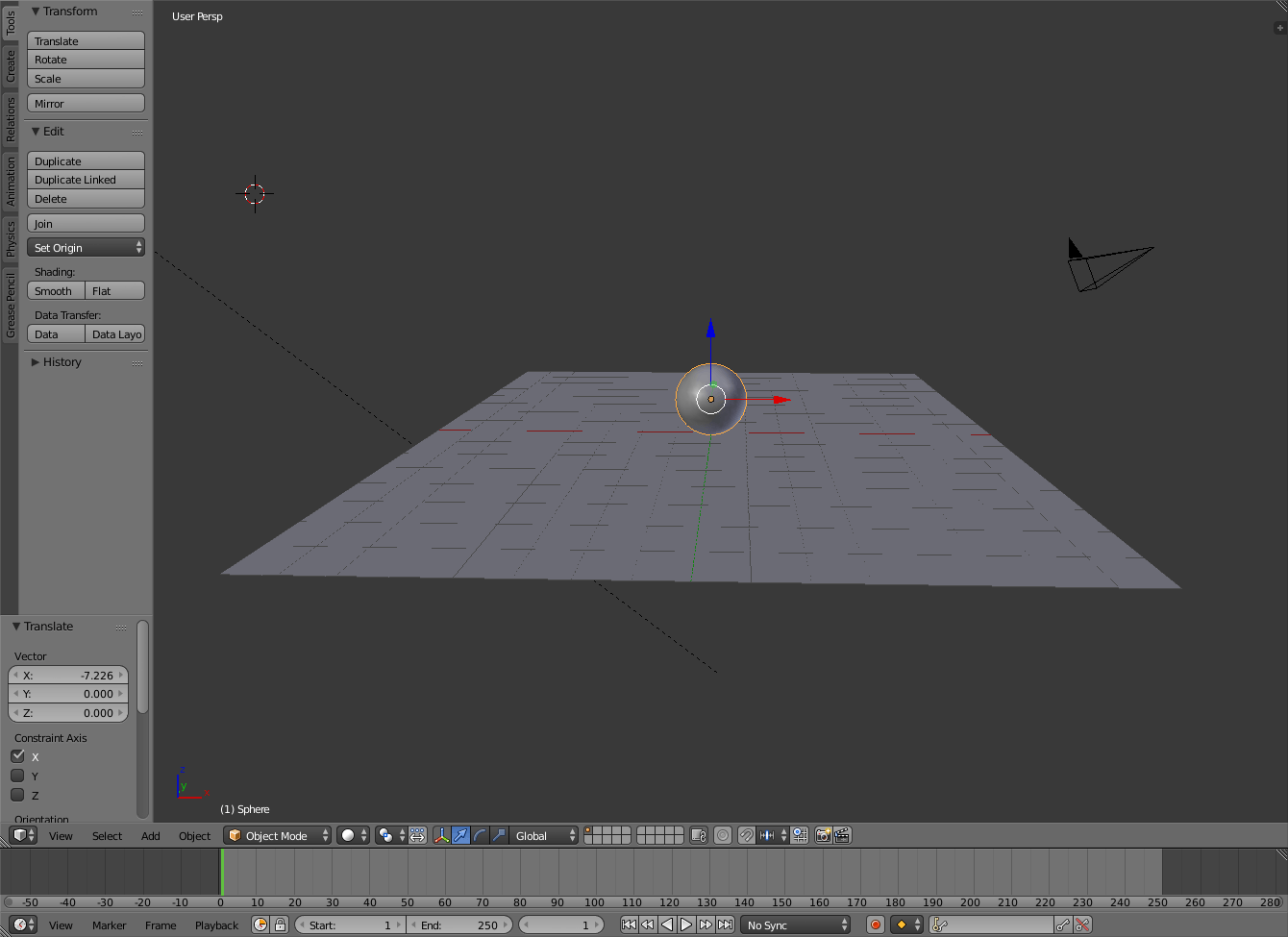 Emeljük a gömbünket kicsit magasabbra, és győződjünk meg róla, hogy a timeline az első vagy a nulladik framen áll - az aktuálisan aktív frame-et a zöld csík jelzi. Ha nem ott van, egy bal kattintással a timeline-on a megfelelő időre léptethetjük.