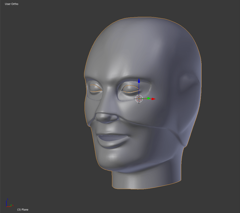 Ha megvan a körülbelül elképzelt arc — ne felejtsük, ez a saját karakterünk, akkor alakítunk rajta, amikor csak jólesik —, akkor mehet is rá minden, ami extra. Ez Zorrónál például a maszk. A maszkot egy már létező él mentén fogjuk előállítani, ez lesz az a sáv, ameddig tart az anyagdarab.