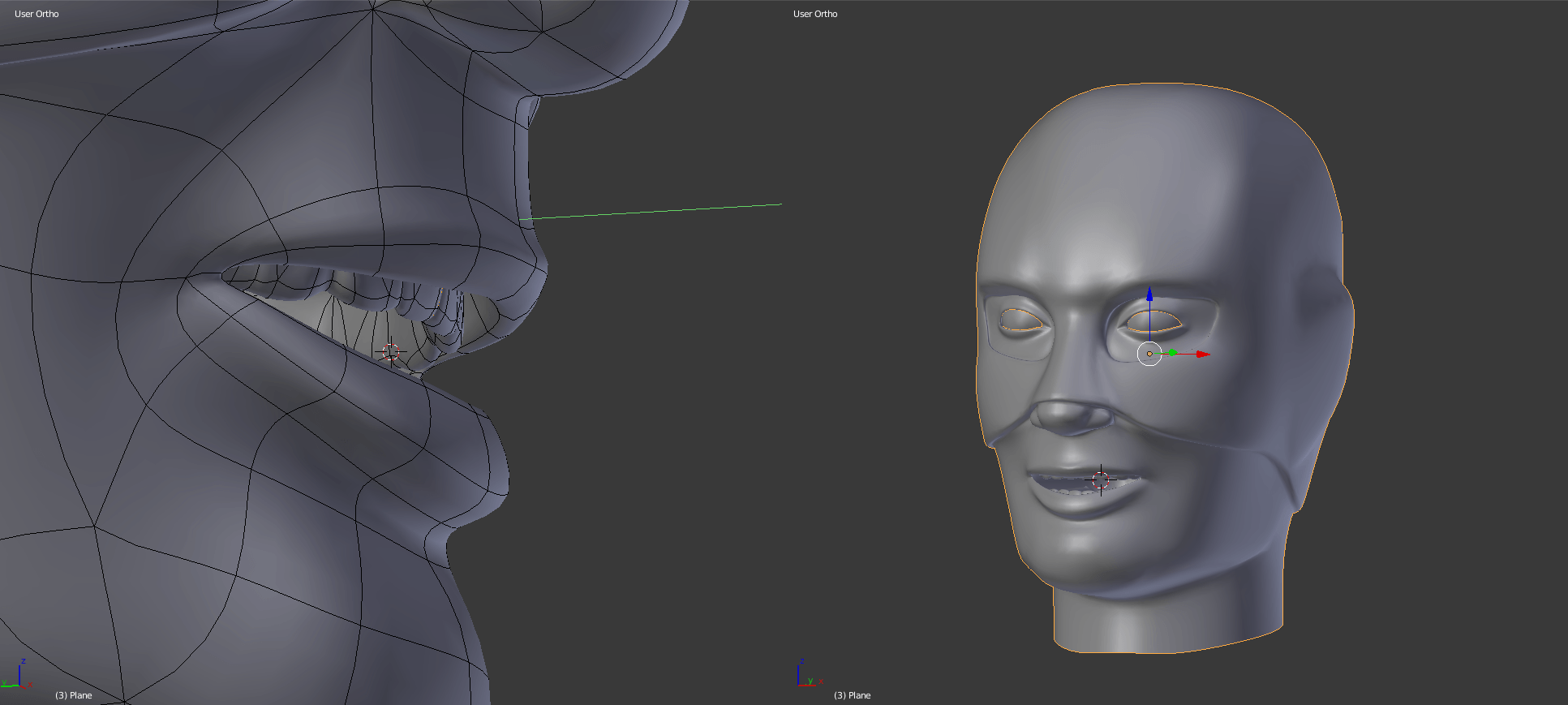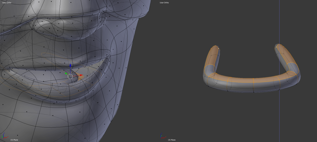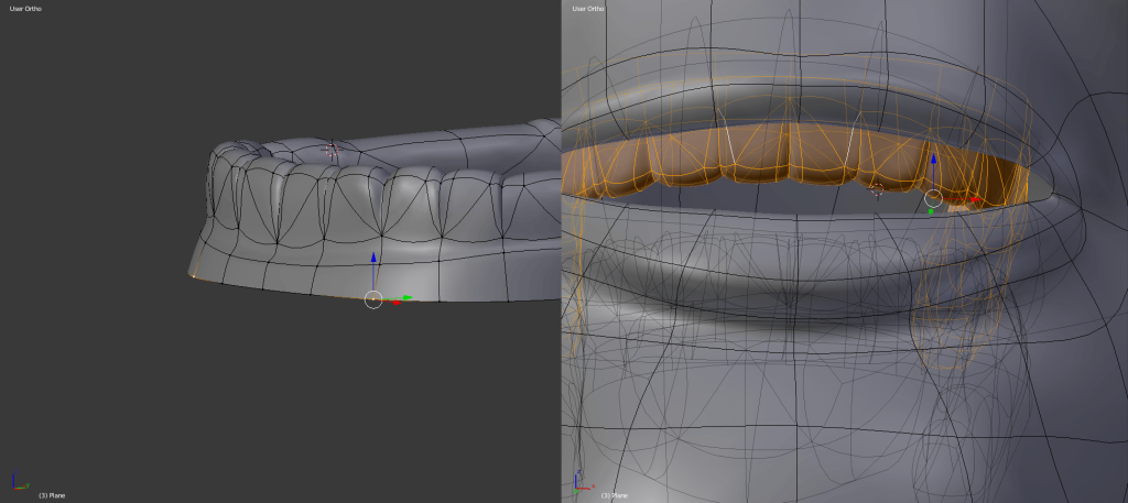 Az igazítások után még hátra vannak a fogak. A fogak elkezdéséhez érdemes a száj belsejéből duplikálni a nyelv melletti felületeket (persze a nyelv mögül kihagyjuk a kijelölést).