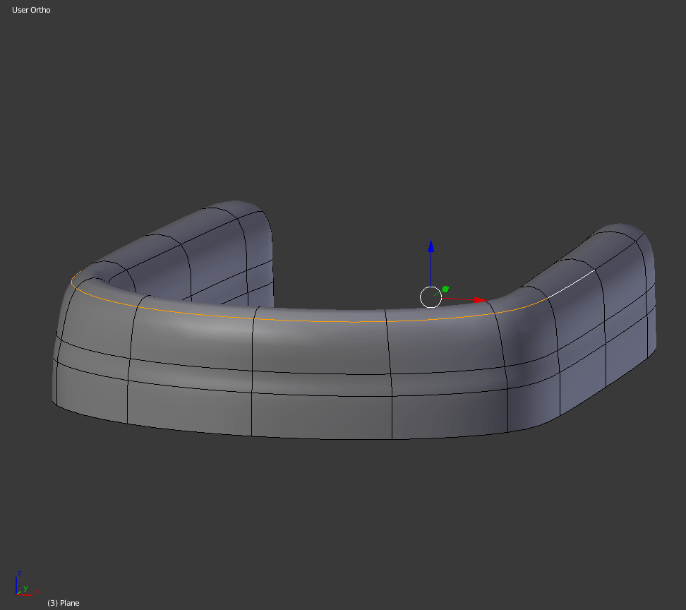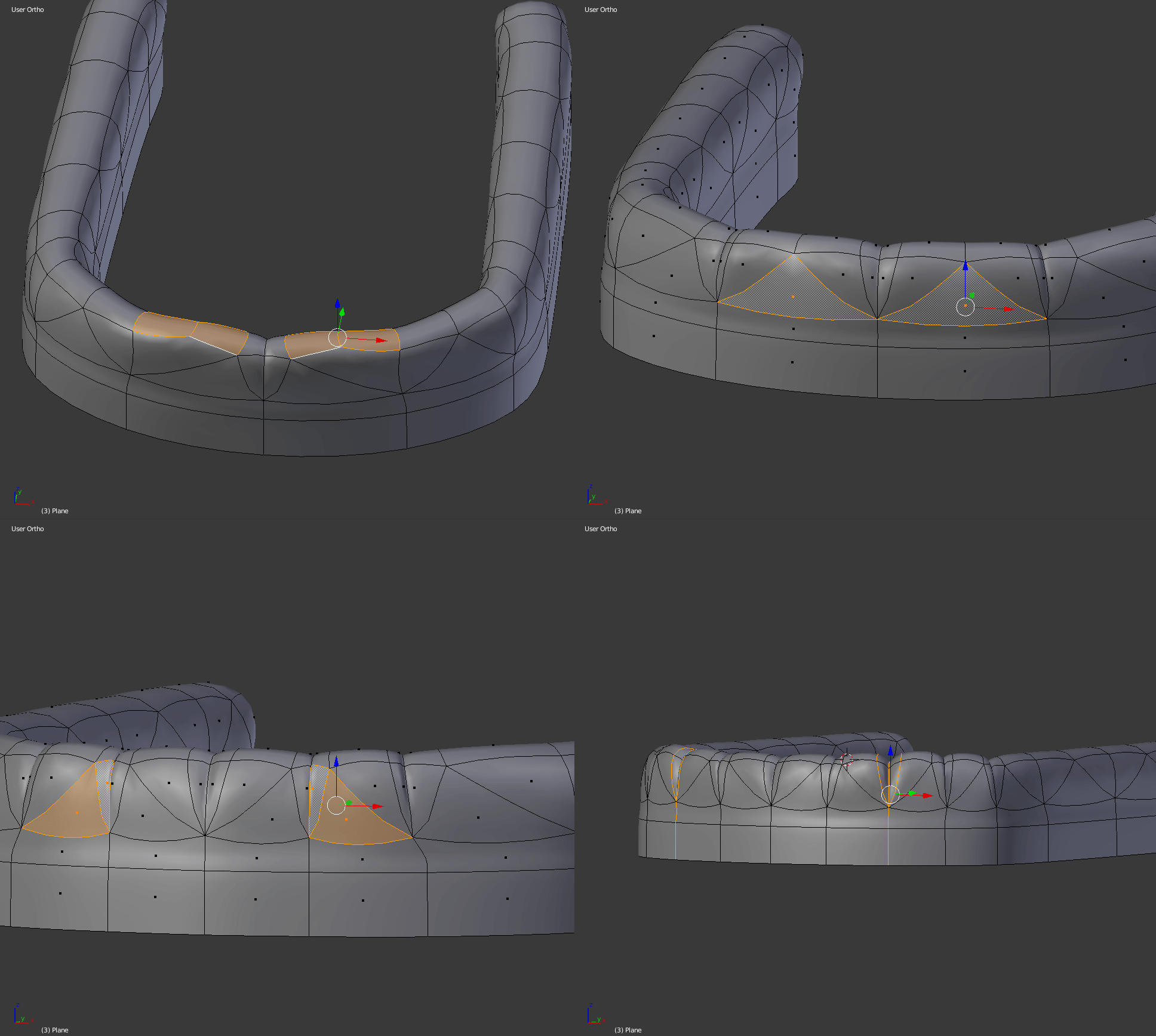Tehát igazítsuk kicsit, majd extrudáljuk felfelé a patkó formájú mesh-cafatunkat. Töröljük az alsó face-eket, és extrudáljuk újra a felsőket. Miután azt kicsit feljebb toltuk, extrudáljuk újra és azt már a fogak elképzelt magasságáig toljuk.