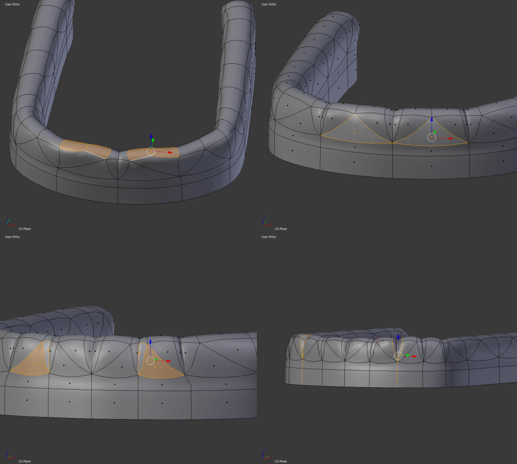 Duplikálás után Ctrl+[I]-vel (inverz kijelölés) jelöljünk ki minden mást, majd [H]-val rejtsük el. Így könnyedén tudjuk szerkeszteni a fogakat.