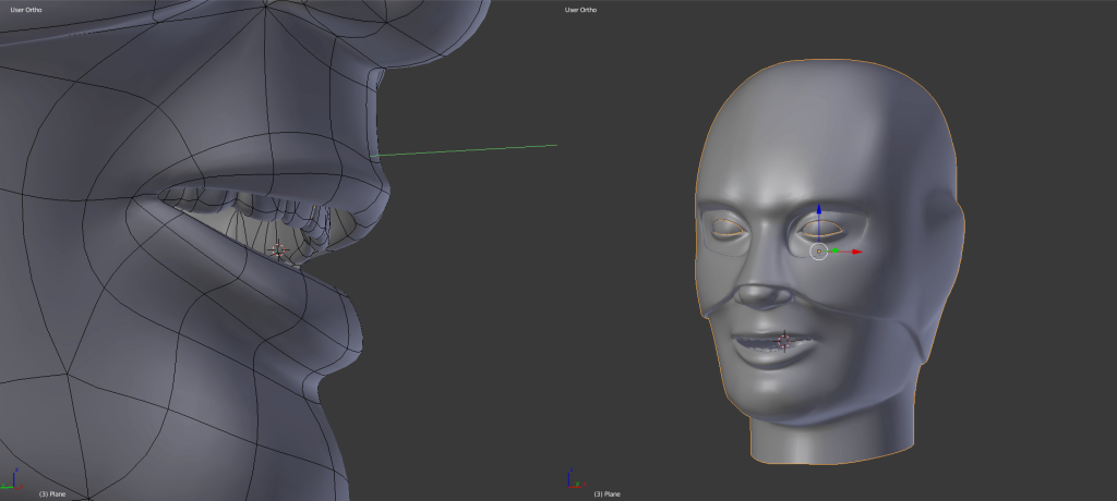 Igazítsuk a fogakat a helyükre, kicsit méretezhetjük, formázhatjuk is őket, hogy jobban nézzenek ki. Dolgozzunk a fejen addig, amíg megfelelőnek nem érezzük. Ha jobbára elértük, amit akartunk, tehát már nem tervezünk vagdosni a meshen, akkor ideje elkezdeni UV-zni.