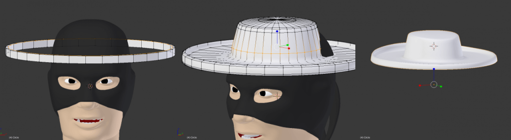 Mi a UV-zés után hozzáadtunk még néhány kiegészítő objektumot, hogy teljesebb legyen a karakter. Ezek egyike a kalap, amit egy egyszerű körből kiindulva alkottunk meg több fénykép alapján.