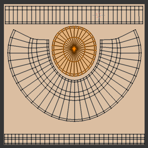 A kiegyenesítéssel egy kicsit torzítjuk a textúra méretét az adott sávon, de ha úgyis kézzel festjük rá a textúrát, ez nem annyira feltűnő. A kiegyenesített sávokkal nagyon sok helyet nyerünk a UV mapon.
