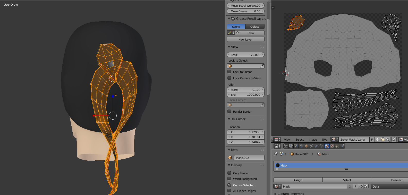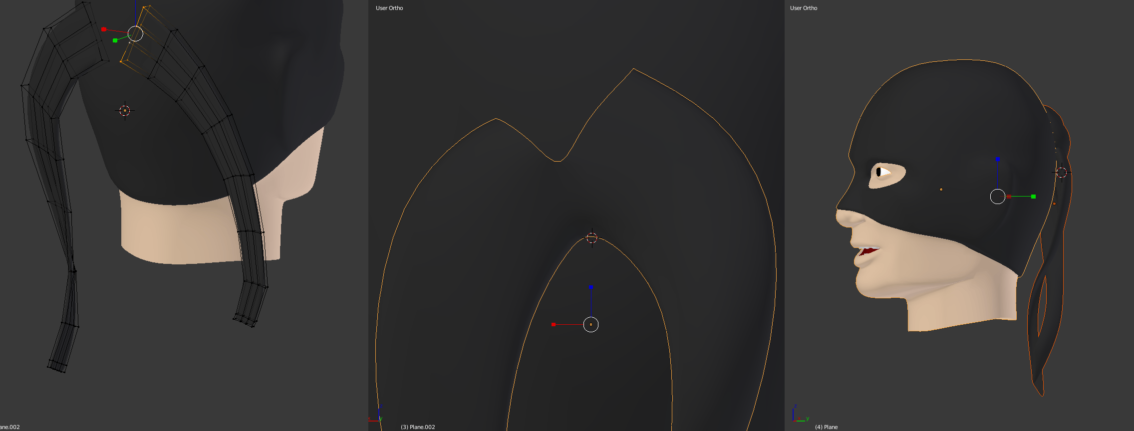 A másik külön objektum, amit hozzáadtunk, az a fejkötő hátulján a csomó és az anyag két lelógó vége.