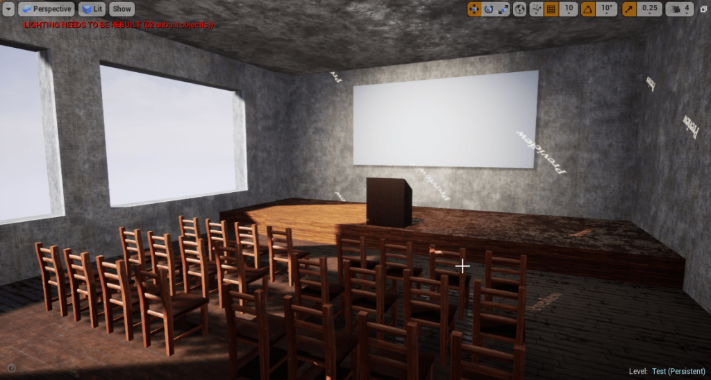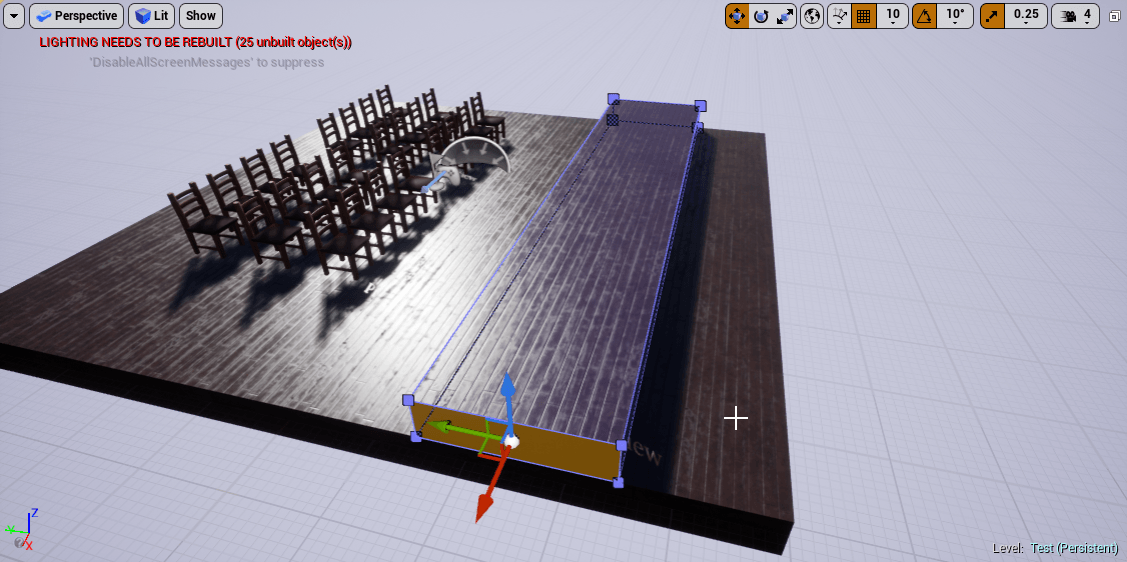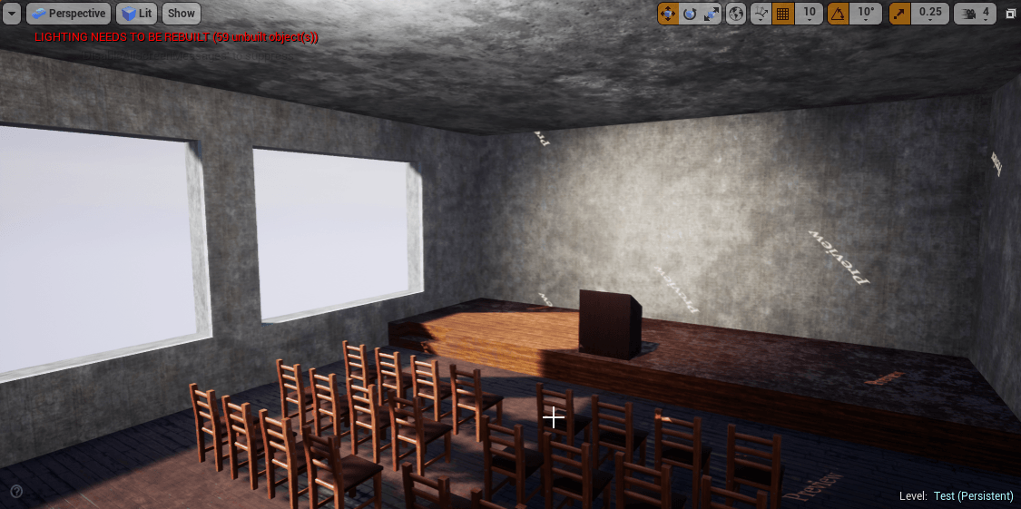 Az előző cikkünkben elkezdtünk Unreal 4-ben a szék assetünk felhasználásával felépíteni egy pályát. Most továbbhaladunk a pálya elkészítésével, csak az engine-ben és a starter contentben megtalálható assetek felhasználásával.