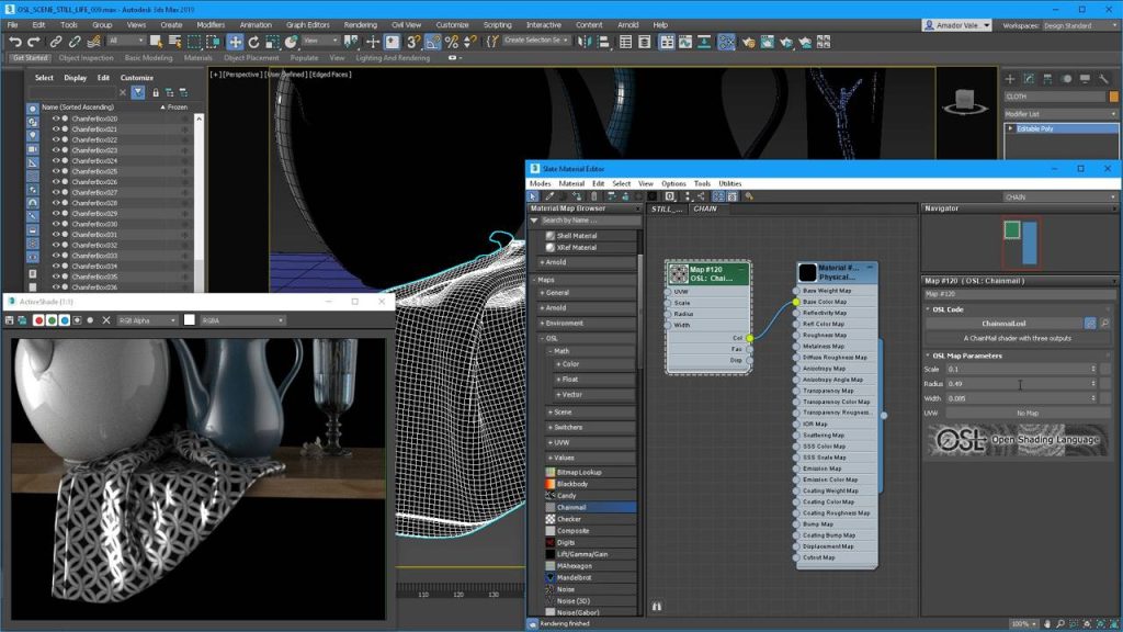 Az Open Shader Language támogatásának köszönhetően száznál is több shader közül lehet válogatni. A legegyszerűbb matematikai node-októl kezdve a legbonyolultabb procedurális textúragenerálásig terjed a lista. Az OSR shadereket közvetlenül az anyagszerkesztőben lehet módosítani, a változásokat pedig élőben láthatjuk a Viewportban és az ActiveShade-ben. A shaderek emellett beimplementálhatóak az adott jelenetbe, de meghagyhatjuk őket küldős hivatkozásként is. Emellett a 3ds Max API formának köszönhetően a külsős rendermotorok, mint a Corona is képesek kezelni.