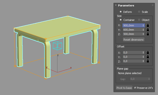 Ahhoz, hogy az UVW mapok ne deformálódjanak méretezés közben, hozzáadtak egy Preserve UVWs opciót.