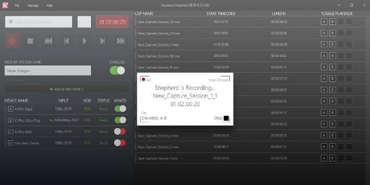 A Faceware Technologies bejelentette a Shepherd nevű új applikációt. A szoftver képes szinkronizálni a ProHD kamerák által rögzített arc motion-capture felvételeket a Vicon vagy OptiTrack teljesalakos motion capture rendszerével.