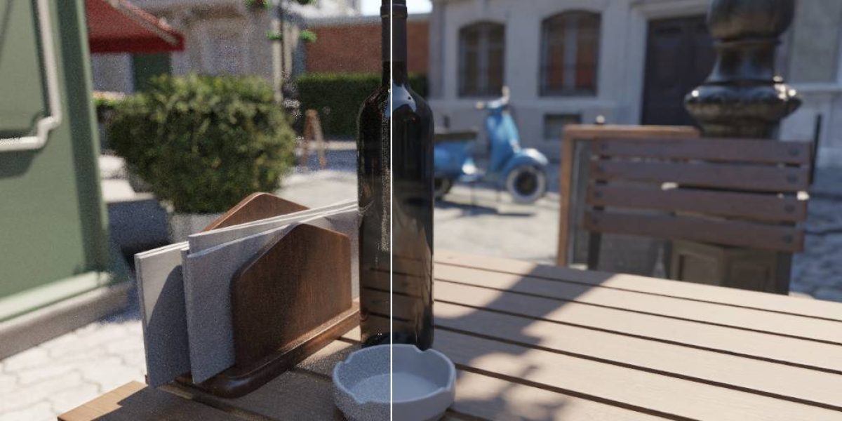 A szoftver képességeit jóval egyszerűbb példákon keresztül is megtekinthetjük az Intel weboldalán a galériában, ahol Lumberyard, Crytek és Evermotion teszt scene-ekre eresztették rá a denoiser-t.
