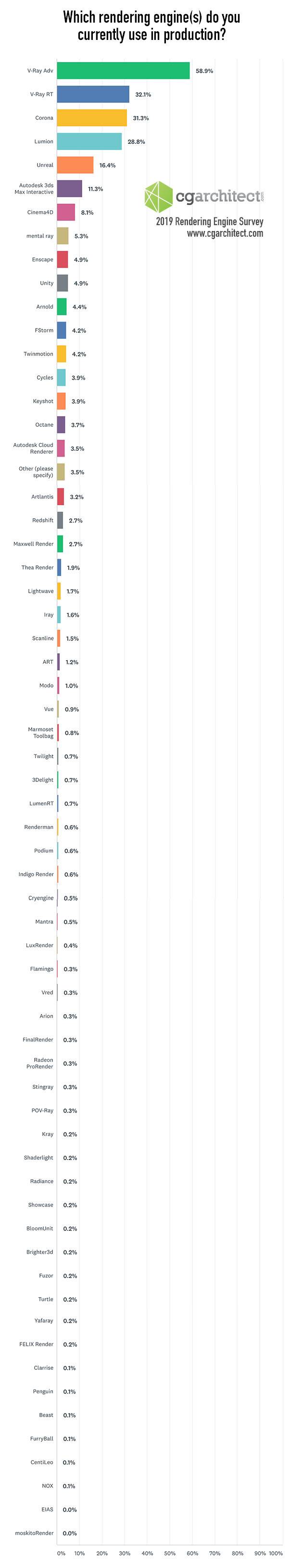A CGarchitect 2019 január 10 és március 14 között közvélemény-kutatást végzett az archviz közösségben saját social media fiókjain és emailek útján, illetve egyéb releváns Facebook csoportokban és szoftveres fórumokon.