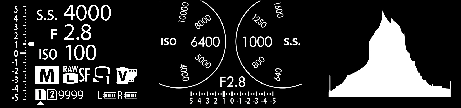 De itt nincs még vége, mert a hátsó, nagy kijelző alatt, a Canon és Nikon legnagyobb gépeihez hasonlóan egy harmadik kijelzőt is kapunk, amin az exif adatokat, expozíciós skálát vagy egy világosság hisztogramot jeleníthetünk meg. Jobb lenne ide a legvilágosabb színcsatorna hisztója, de ezt talán egy firmware frissítéssel megkapjuk.