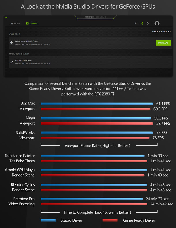 És végül: az Nvidia Studio illesztőprogramjai csekély hatással vannak a DCC alkalmazások teljesítményére. Nem rontják a teljesítményt, javíthatják a stabilitást, tehát nincs ok arra, hogy ne használd őket: csak ne számíts a teljesítmény jelentős növekedésére.