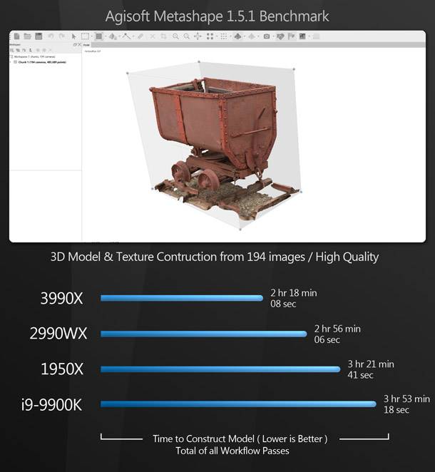 A Threadripper 3990X legtöbb áttekintése megemlíti, hogy a CPU összehasonlítása nehézkes, mivel kevés alkalmazás képes felhasználni ezt a sok magot - nagyrészt igazuk is van. DCC szoftverek használata esetén azonban olyan sok eszköz áll rendelkezésünkre, mellyel bőven ki tudjuk használni.