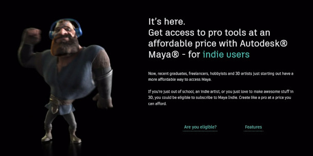 A tavaly nyáron útjára indított 3ds Max és Maya Indie-t évi 100.000 dollárnál kevesebbet kereső artistok számára kínálják.