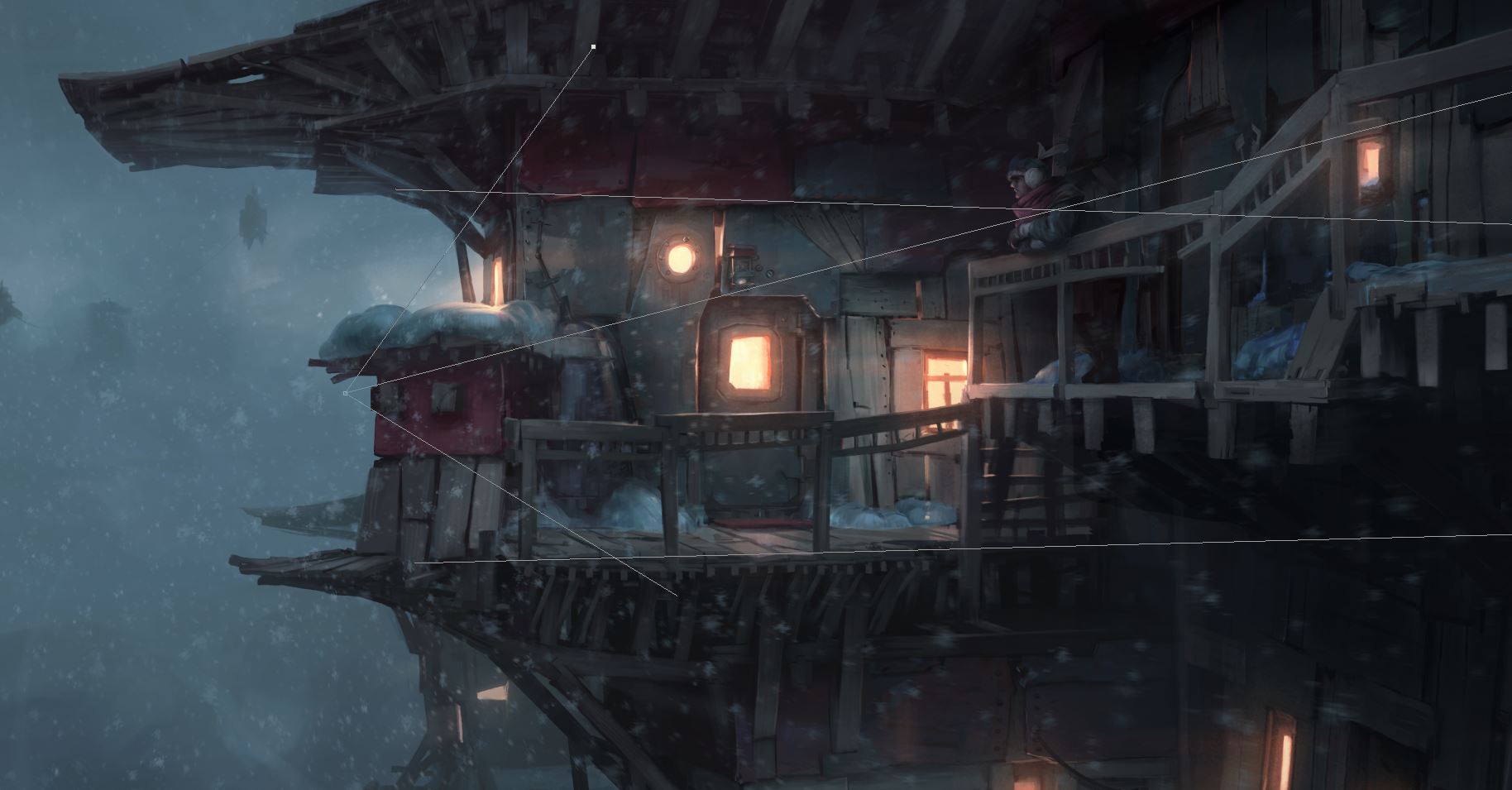 A path-ok feltűnésmentes segítséget nyújtanak a perspektívavezetéshez, ha nem szívesen használsz gridrácsot munka közben. Kattints a képre hogy lásd Simon saját path-megoldását ennél a koncept-munkánál az Airborn projektjén.