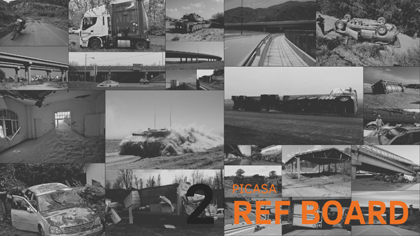 Pár perces keresgélés után készítek egy kollázst, amely tükrözi az általam megcélzott hangulatot és fényviszonyokat, és bemutatja a kompozíció legfontosabb elemeit. Bosszantó, hogy minden fényképet külön-külön be kell húzni egy Photoshop dokumentumba, a Picasa nevű Google-alkalmazás ebben nyújt segítséget.