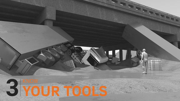 Fontos, hogy tudd, melyek azok a szoftverek és funkciók, amelyekkel leggyorsabban elérheted a célod. Szükség van arra, hogy Zbrush-ban saját terrain-t sculptolj magadnak alpha-k segítségével, vagy elég a Modo-s replikátorok használata? Talán használnál inkább linework-öt ezúttal?