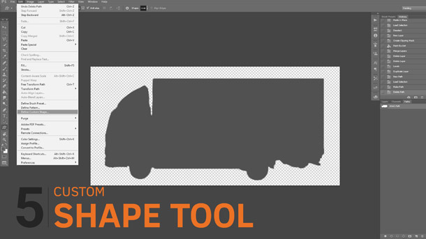 Kattints a Create New Path ikonra a Path panel alján, hogy egy új path-ot adj hozzá az elem körül, majd menj az Edit > Define Custom Shape menüpontra.