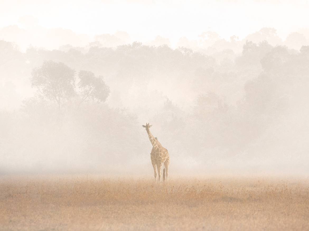 Megálltunk. Egy közeli surjánosban zsiráfok tanyáztak, néha, egy-egy fejet láttunk kibukkanni a lombok közül. Vártunk. Egyszeriben szétnyílt a pára és egy bika sétált ki a tisztásra, lépéseit nyűvágók fürge csoportja kísérte. Ekkor már mindannyian a gépeinken keresztül figyeltük a jelenetet. A zsiráf kicsit ácsorgott, jól megnézett minket, úgy tűnt, nem ránk számított. Majd hirtelen megbókolt és visszasétált a ködbe...