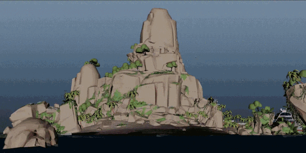 A legnagyobb kihívást a kezdő shot jelentette, melyben a kamera keresztülhalad a szigeten, egészen a gonosz rejtekhelyig. Alapként a game modelt használtuk, magunk rendeztük be a set-et, valamint házon belüli procedural tool-okat használtunk a nagy felbontású növényzet és crowd Houdini-ben történő szétszórásához. Sculpt-olnunk kellett egy új homokos tengerpartot is.
