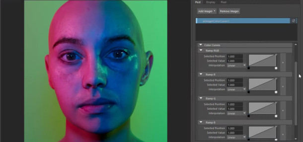 Az OIDN denoiser mellett az új imager-ek a színkorrekcióhoz szükséges imager_color_curves-t is tartalmaznak, külön görbékkel az egyes RGB komponensekhez és a luminance-hez, amint az fent is látható.