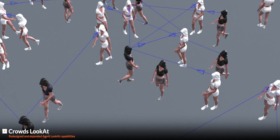 A Houdini tömegszimulációs eszközei crowd agentekhez kaptak egy átalakított look-at rendszert – ahol az artistok más agenteket vagy pontfelhőket használhatnak célként –, továbbá gaze duration beállításához egy „attention span” lehetőséget.
