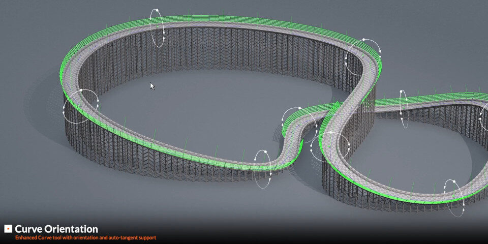 Továbbfejlesztett Curve tool orientation és auto-tangent támogatással