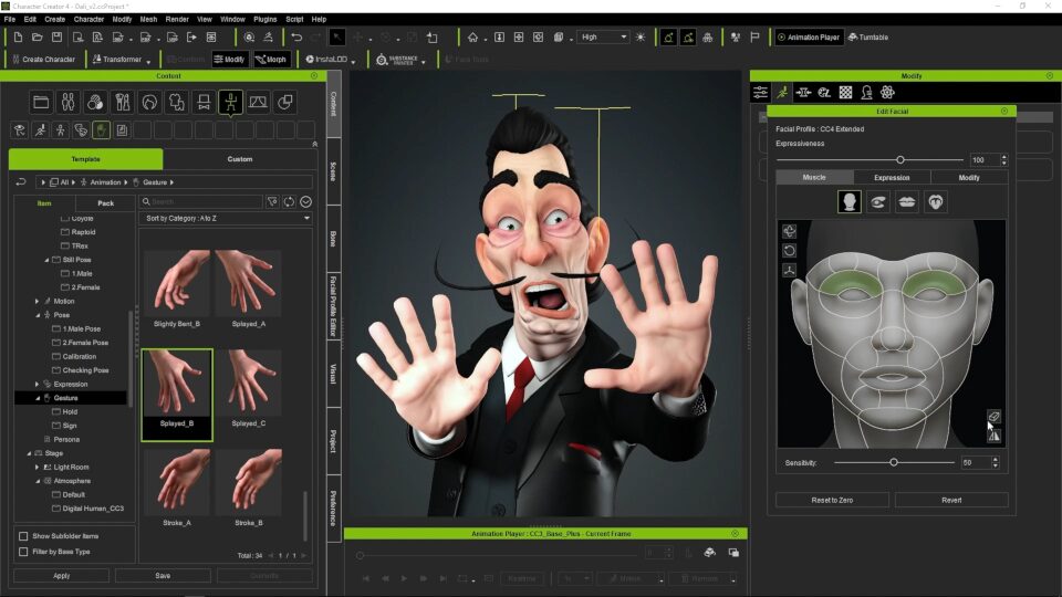 A plugin automatizálja a folyamat technikai részeit, így az artist-ok szabadon összpontosíthatnak a kreatív szempontokra. A 13 alap arckifejezés testreszabható ZBrush-ban, majd a Character Creator-rel kombinálva szinte végtelen számú arckifejezést hozhatunk létre.